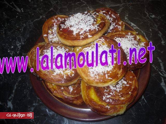 تدهن كل قطعة بالحليب بصفار بيض و تدخل الفرن وو تقدم بصحة و عافية