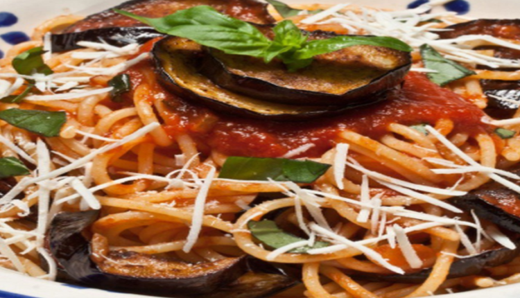 5. اخلطي السباجيتي مع صوص الطماطم والباذنجان.