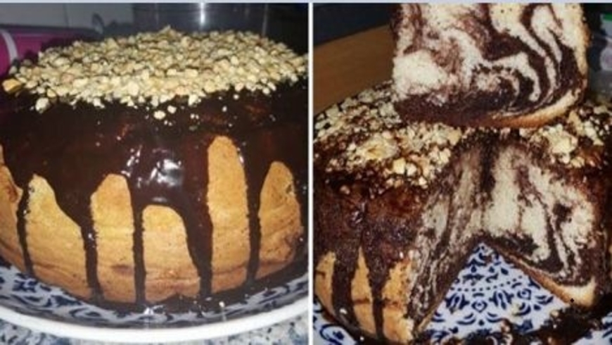 طريقة التحضير : خلط السكر مع السمن، ثم إضافة البيض، والفانيليا بالتدريج، حتى تتجانس المكونات جيدا. خفق المكونات لمدة ثلاث دقائق في الخلاط الكهربائي، ثم إضافة الحليب وضع الدقيق مع نصف كمية: البيكنج باودر، والبيكنج صودا، والملح في وعاء وضع باقي المكونات الجافة مع الكاكاو في وعاء ثان، مع التقليب جيدا. وضع نصف الكمية من المكونات السائلة كالبيض، والزيت، والحليب، على الوعائين، مع الخلط الجيد حتى تتجانس كل المكونات دهن الطنجرة بالزيت والدقيق المنثور. سكب القليل من الخليط الأبيض في الطنجرة، وبجانبه القليل من الخليط البني، ثم سكب الخليطين بشكل معاكس، أي الخليط الأبيض فوق البني والخليط البني فوق الأبيض حتى انتهاء الكمية. خلط اللونين مع بعض بواسطة سكين رفيع وضع الطنجرة في الفرن لمدة نصف ساعة.