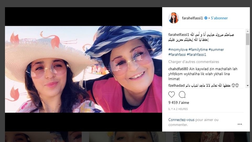 شاركت الفنانة فرح الفاسي متتبعيها صورة لها رفقة أمها في الشاطئ على حسابها الرسمي أنستغرام وكانت هذه الصورة الأولى حيث لاقت إعجاب المتابعين كما لاحظوا الشبه الكبير الذي يجمع الأم بابنتها.