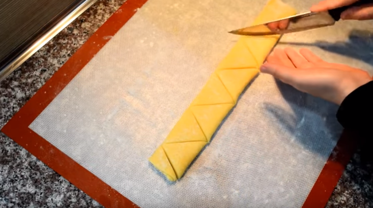 • نثني العجين كما هو مبين في الصورة مع الاستمرا بالرش بالسكر
