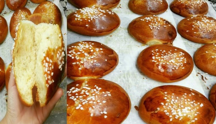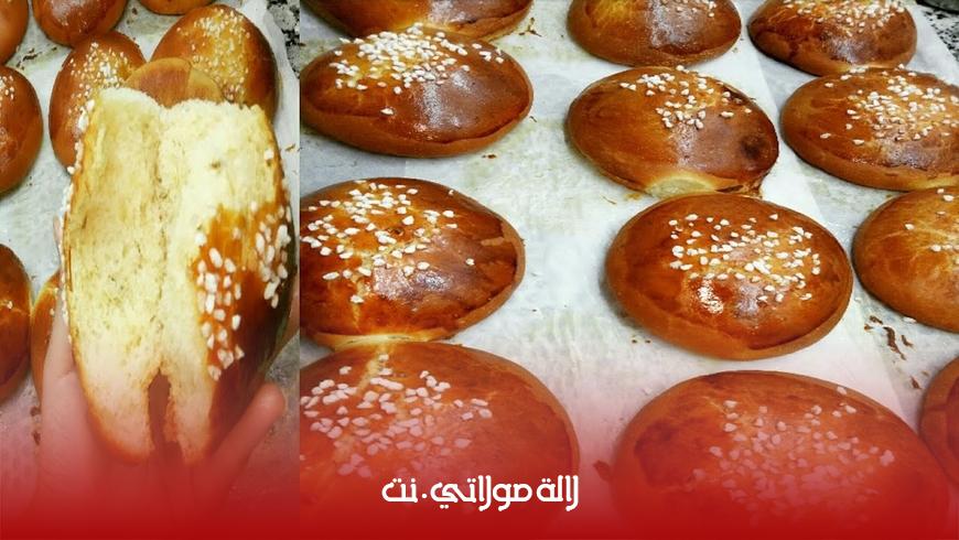 نشكل العجينة إلى كريات متوسطة الحجم ونتركها ترتاح مدة نصف ساعة. ندهن العجينة بخليط البيض ونرش السمسم عليها. نسخن الفرن ونقوم بإدخال العجينة إلى الفرن وننتظر حتى تنضج وتتحمر تحتاج إلى ما يقارب الثلاثين دقيقة.