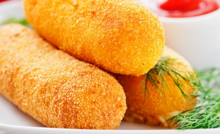 3. ثم تفرد وتقطع بشكل أسطواني تغطس في طحين، بيض، بقسماط وتقلى في زيت غزير.