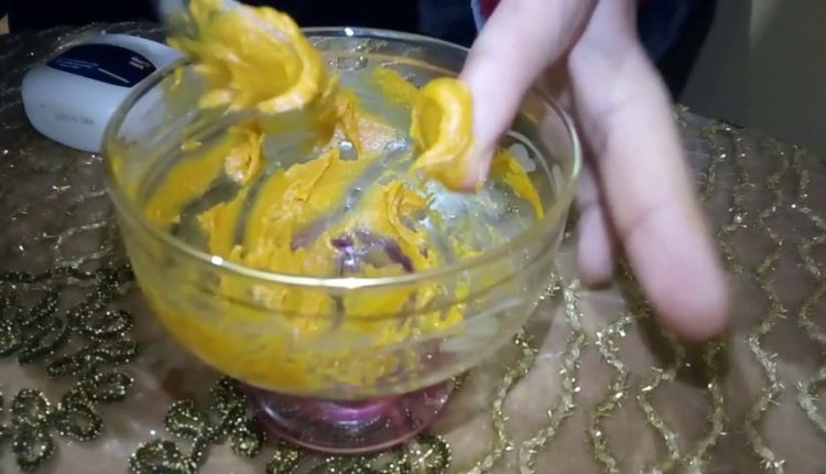 المكونات : ملعقتين من الفازلين + ملعقتين من الكركم المطحون جيدا وبشكل ناعم