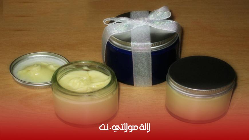 المكونات : قطعة من المسك الأصفر المطحون + ملعقة من الجاوي الأبيض المطحون + ملعقة من الشبة المطحونة + كمية من زيت جونسون للأطفال + ملعقة من أي كريم مرطب .