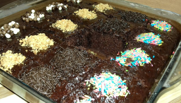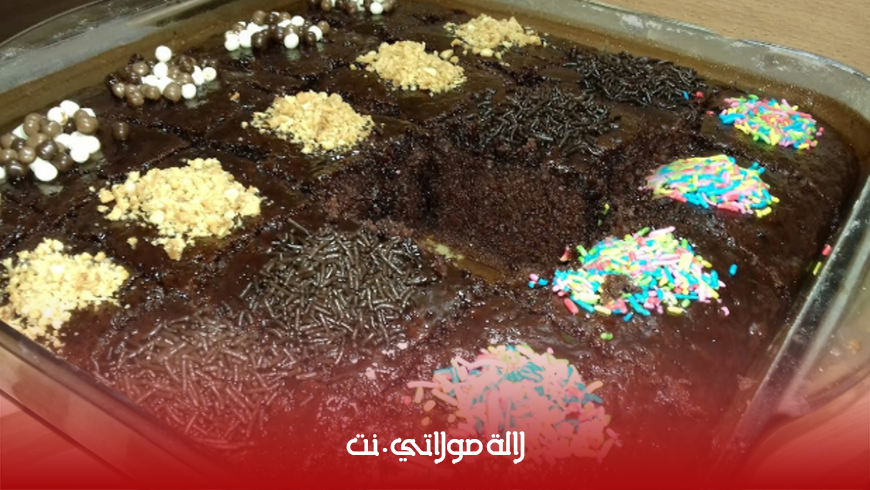نعمل ثقوب باستعمال عود الأسنان ثم نسقي الكيك بسيرو السكر و الحامض