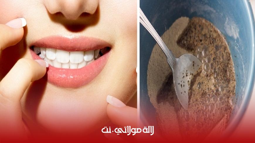 المكونات : ملعقة من القهوة بودرة + ملعقة من عصير الليمون + القليل من معجون الأسنان