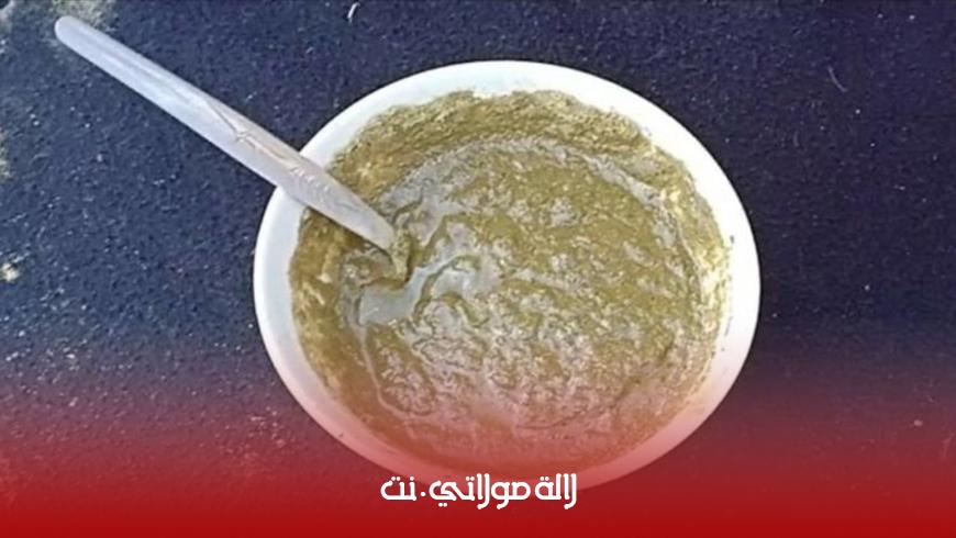 المكونات : ملعقتين من الغاسول الأخضر+ ملعقة من الحلبة المطحونة + ملعقة من الحمص المطحون + ملعقة من الفول المطحون + ملعقة من صابون الاعشاب + ملعقة من الأرز المطحون + كمية من عصير الليمون لخلط المكونات أو ماء الورد حسب الرغبة.