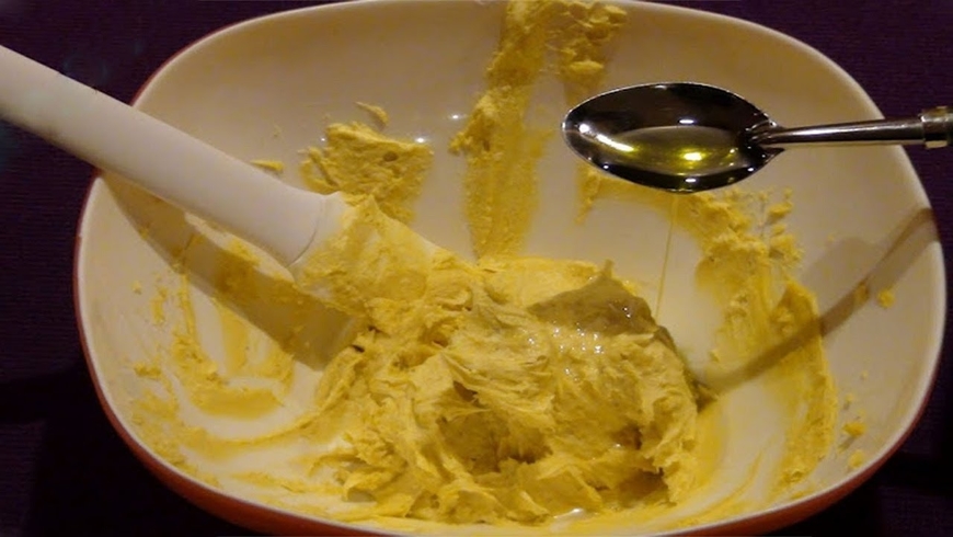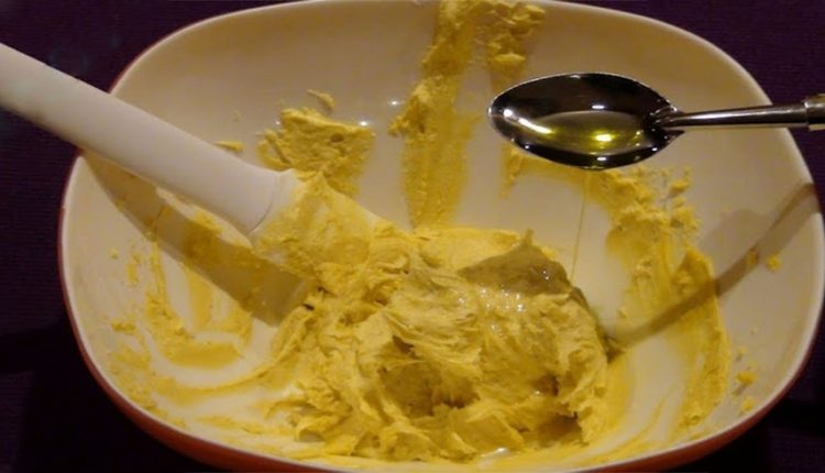 المكونات : 3 ملاعق من الفازلين الطبي + ملعقتين من الكركم الناعم + ملعقة من زيت جوز الهند + ملعقة من النشا الناعم