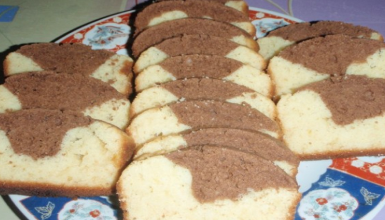 7- إفردي مزيج الكيك الأبيض في قعر قالب الكيك. أضيفي مزيج الكيك بالكاكاو وأدخلي القالب إلى الفرن لـ40 دقيقة.
