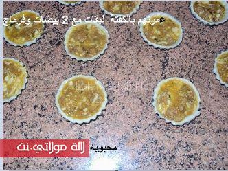 بلاطو لكملتو كندخلو لثلاجة باش عجينة تقصاح حتى كملت ودهنتهم باصفر البيض مع قطرة زيت ماكانش عندي جنجلان وستعملت لوز ايفلي وفرماج واعشاب منسمة في تزين الوجه