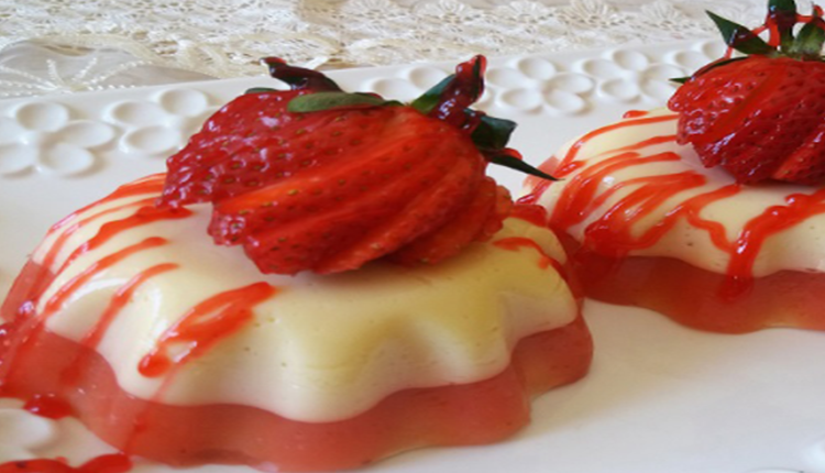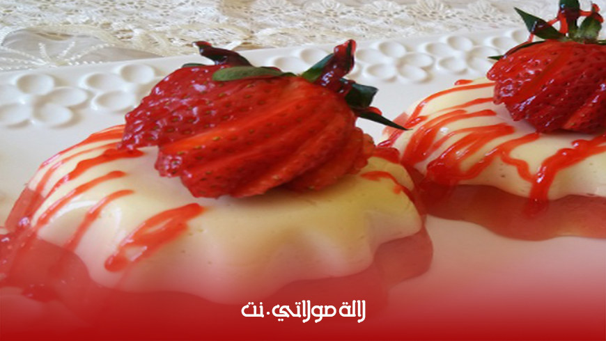 - نقلب الديسير في صحون ثم نزينها بالفريز و صلصة الفريز الجاهزة