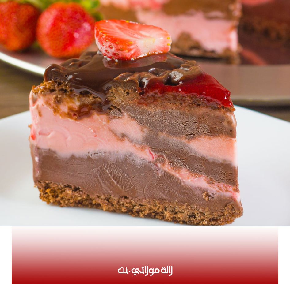 - أخرجي القالب عند التقديم ثم افتحيه على طبق أو صينية ووزعي باقي الصوص على الوجه وزيني بأنصاف الفراولة.