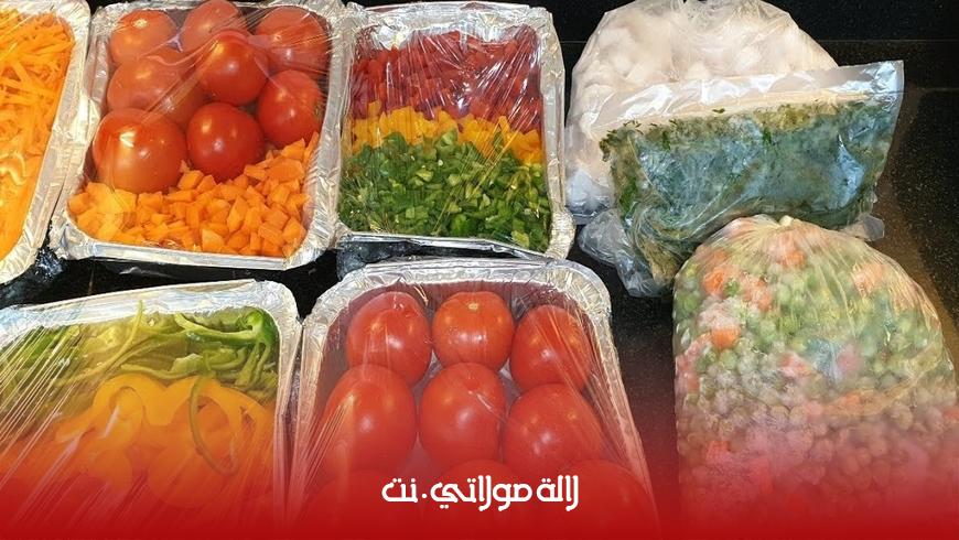 • خصصي يومًا واحدًا في الأسبوع وقومي بفرز الخضروات. قومي بتقطيع الخضروات مثل الفاصوليا والبازلاء والجزر وضعيه في ماء مغلي ثم ماء بارد ثم مصفاة لتصفية الماء، مع التعبئة في أكياس بلاستيكية بالبراد، كما يمكنك تقطيع البطاطس وسلقها في الماء نصف تسوية مع إضافة الملح وملعقة زيت نباتي، ثم قومي بوضعها في أكياس نظيفة وإحفظيها بالتجميد.