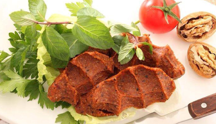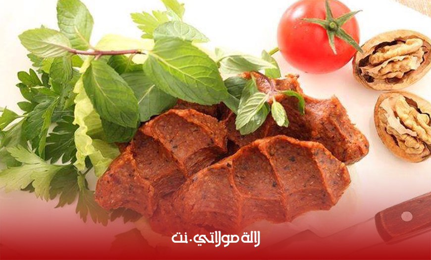 - أخيراً نضيف دبس الرمان و الزيت و نعجن جميع المكونات و نشكلها براحة اليد و نرتبها في طبق التقديم .