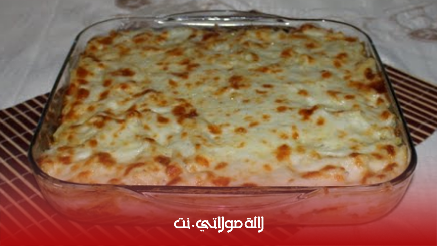 - نوزع البطاطس على سطح وجنبات الصينية ونفرغ الخليط.