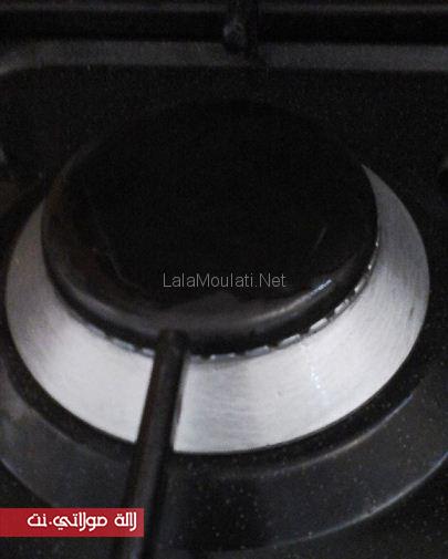 نأخد رؤوس البوطاغاز ونعصر فوقهم حامضة (ليمونة) وقليل من الملح ونظيف فوقهم بيكربونات الصوديوم والماء المغلى وعندما يبرد الماء نقوم بحكهم وسترين أن البقع المترامة تتحلل بسهولة