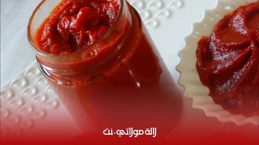 • وضع الطماطم المركزة في قدر على النار والتحريك لمدة خمس دقائق أو للحصول على خليط متجانس. رفع الخليط عن النار، ثمّ سكبه في صينية. وضع الخليط تحت أشعة الشمس، وتركه لمدة ثلاثة أيام مع الحرص على تحريكه مرة في اليوم. سكب الطماطم المركزة في برطمانات زجاجية، ثمّ إدخالها إلى الثلاجة لحين الاستخدام.