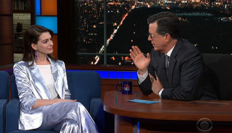 النجمة العالمية آن هاثاواي ترتدي “بدلة” بـ 1185 جنية استرليني بحلقة ببرنامج ” The Late Show “