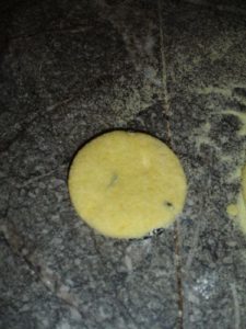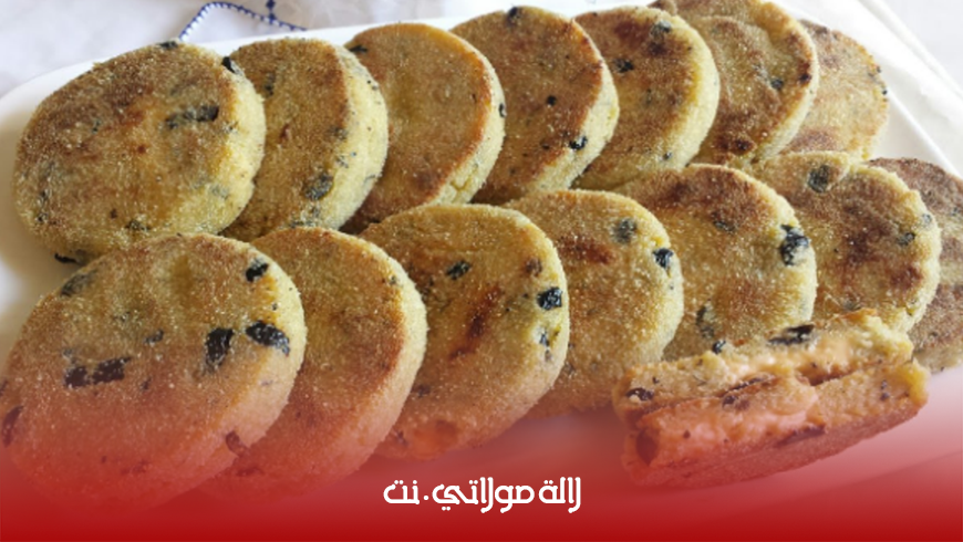 - ويغطى بطبقة أخرى من عجين السميدة وتقطع بقطاعة دائرية أو كأس دائي الفم حتى
