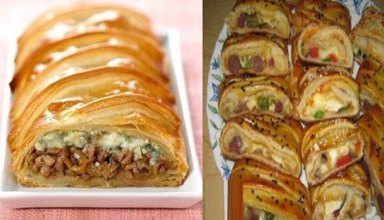 الوان ثم ملح فلفل اسود حباق صلصة طماطم و لحم مفروم بقدونس وقزبرةنمزج الكل جيدا ونتركهم حتى تنضج الحشوة بعدها نشكل العجين ونحشوها بخليط الحشوة