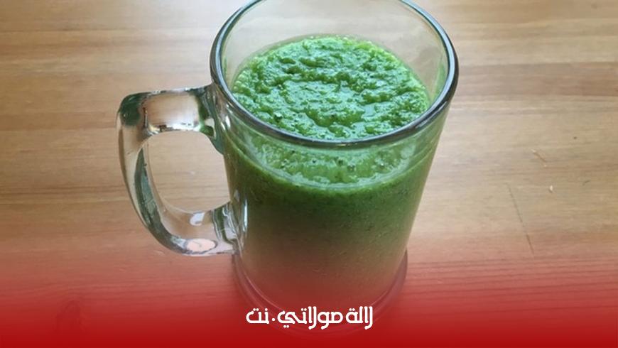 • المكونات : ثمرة كبيرة من الخيار بقشورها + ثمرة من التفاح الأخضر + عود من الكرفس + عصير ليمونة + كوبين من الحليب