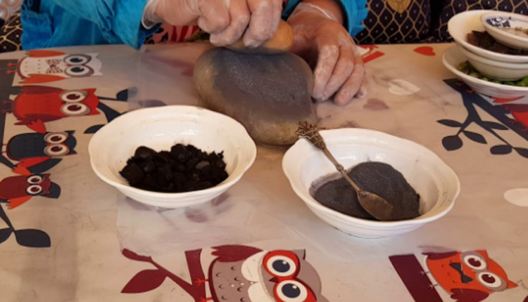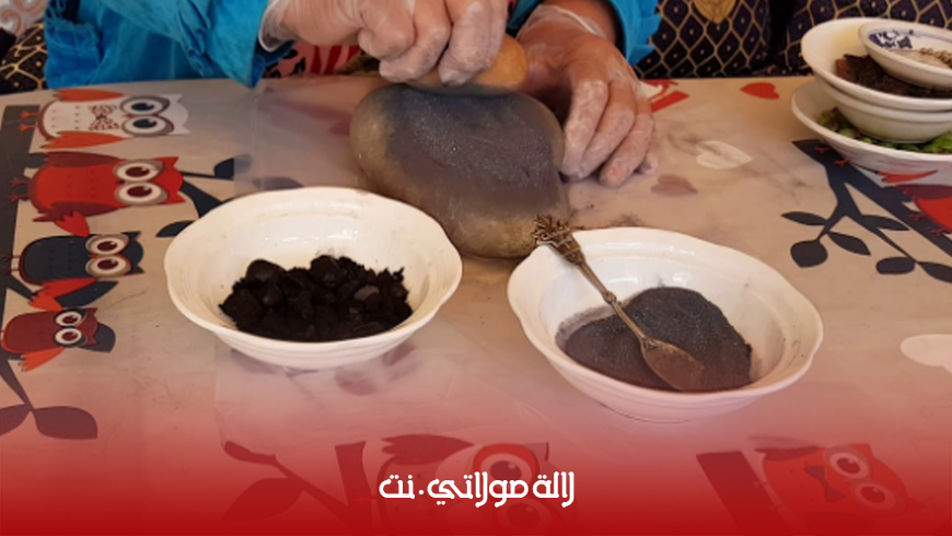 تحمص جميع هذه العناصر مع قطرات من زيت الزيتون على نار هادئة بعدها تطحن جيدا و تغربل في ثوب رقيق لكي يصبح ملمس مسحوق الكحل ناعم للعين بعدها ضعي الكحل في مكحلة خشبية لكي تحافظ عليه لمدة من 4 إلى 5 أشهر .
