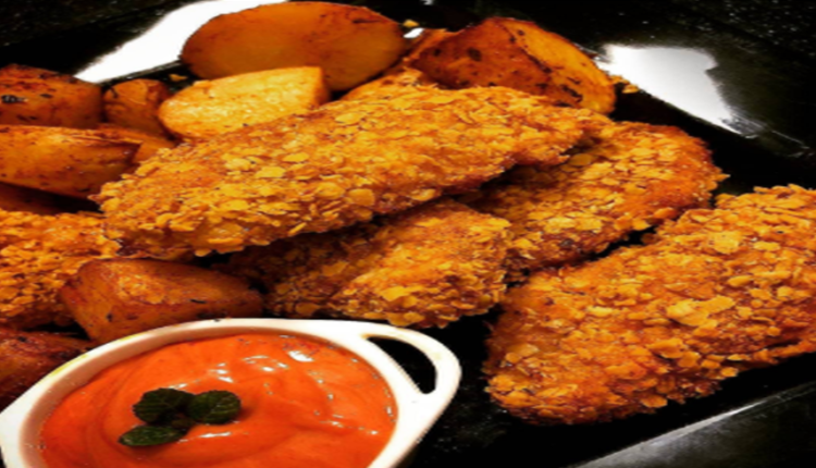 4. اغمسي الدجاج بالللبن الزبادي المخفوق ثم بالشوفان.