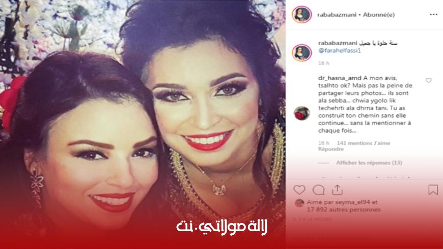 ونشرت “رباب” صورة جمعتها بفرح وعلقت عليها قائلة “سنة حلوة ياجميل”، لترد عليها الأخيرة في تعليق شكرتها وأعربت عن امتنانها لها وجاء فيه “شكرا ختي الغزالة الله يبعد علينا شر الخلق”.