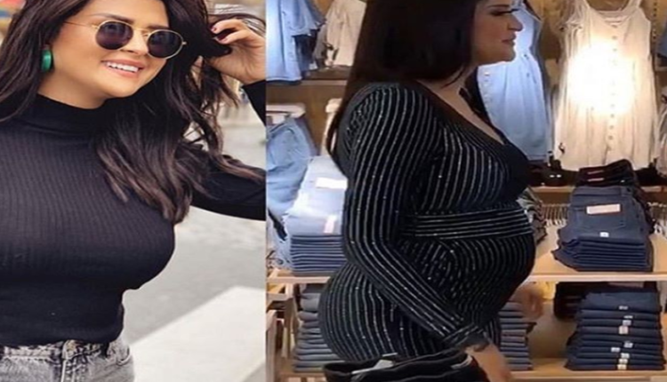 بدت الفنانة أثناء وجودها في افتتاح أحد متاجر بيع الألبسة بدار بيضاء وهي ترتدي فستانا أسود ضيقا، أظهر انتفاخ بطنها.