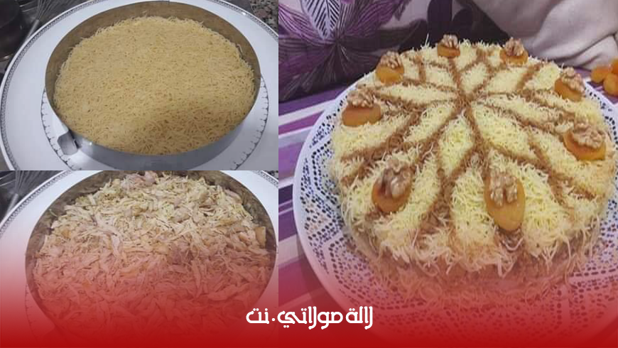 التقديم : بحال كيما ف الصور كانديرو طبقة د السفة ثم طبقة د الدجاج ثم البيض ثم اللوز ثم التفاية ونضيفو النص الباقي د السفة والتزيين حسب الذوق