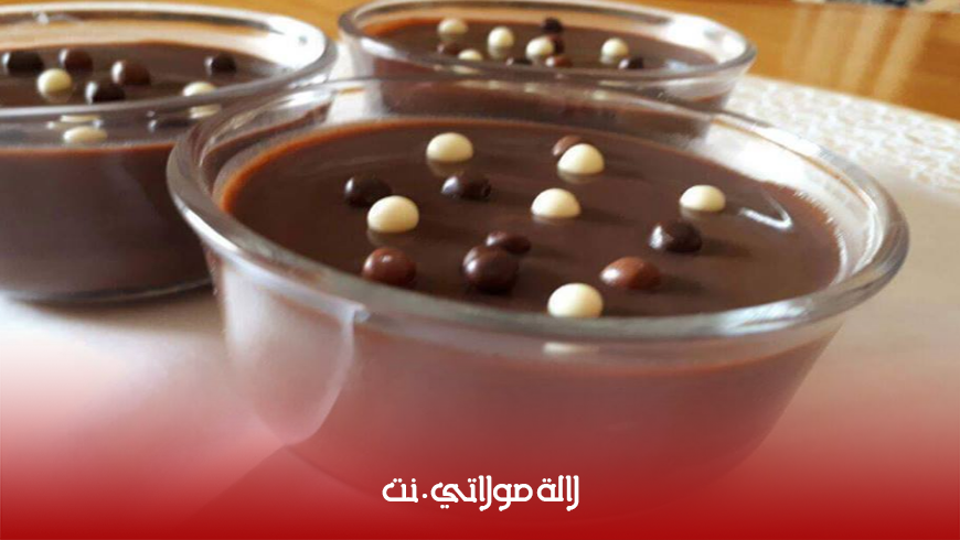 نخلط الكل جيدا و نضعه على نار هادئة مع التحريك المستمر حتى نحصل على خليط كريمي ،نزيله على النار تم نضيف له 8 قطع من الشوكولا مربع ،نحرك جيدا حتى ينسجم الشوكولا مع الخليط ،نصبه في كؤوس التقديم و ندخله الثلاجة حتى يبرد و نقدمه بألف صحة و عافية.