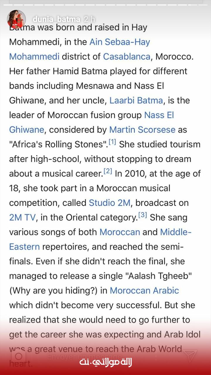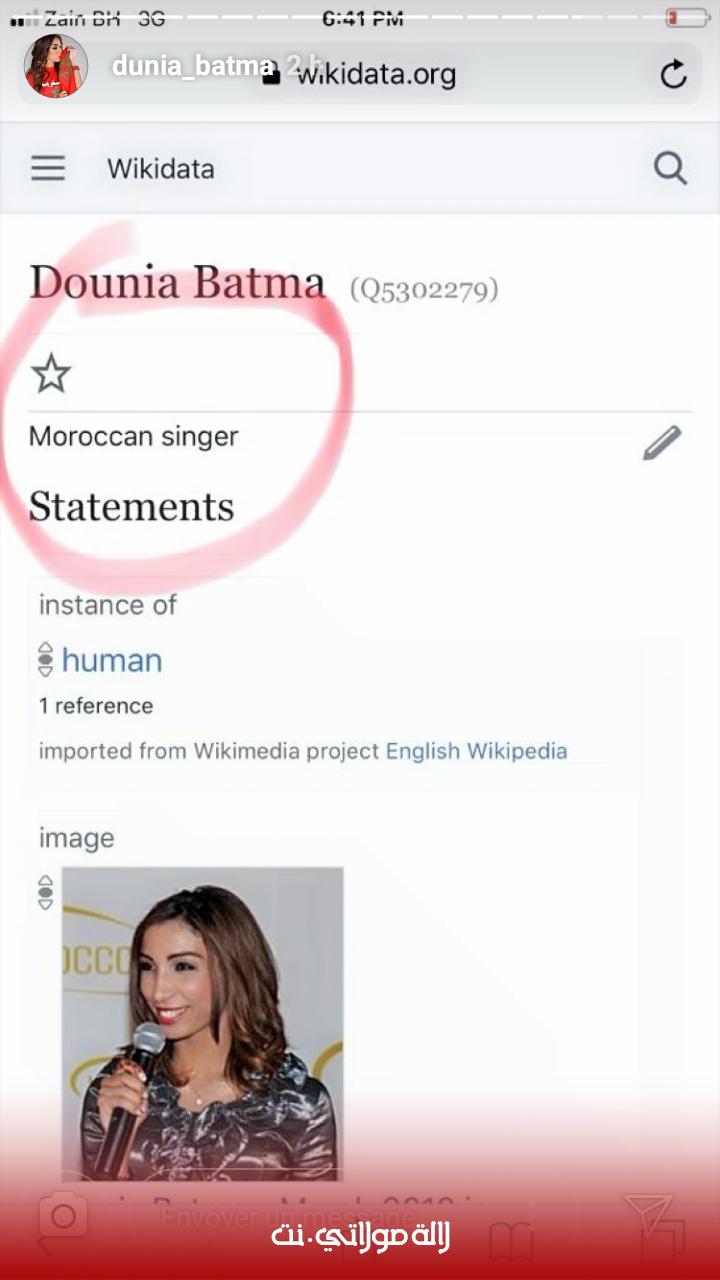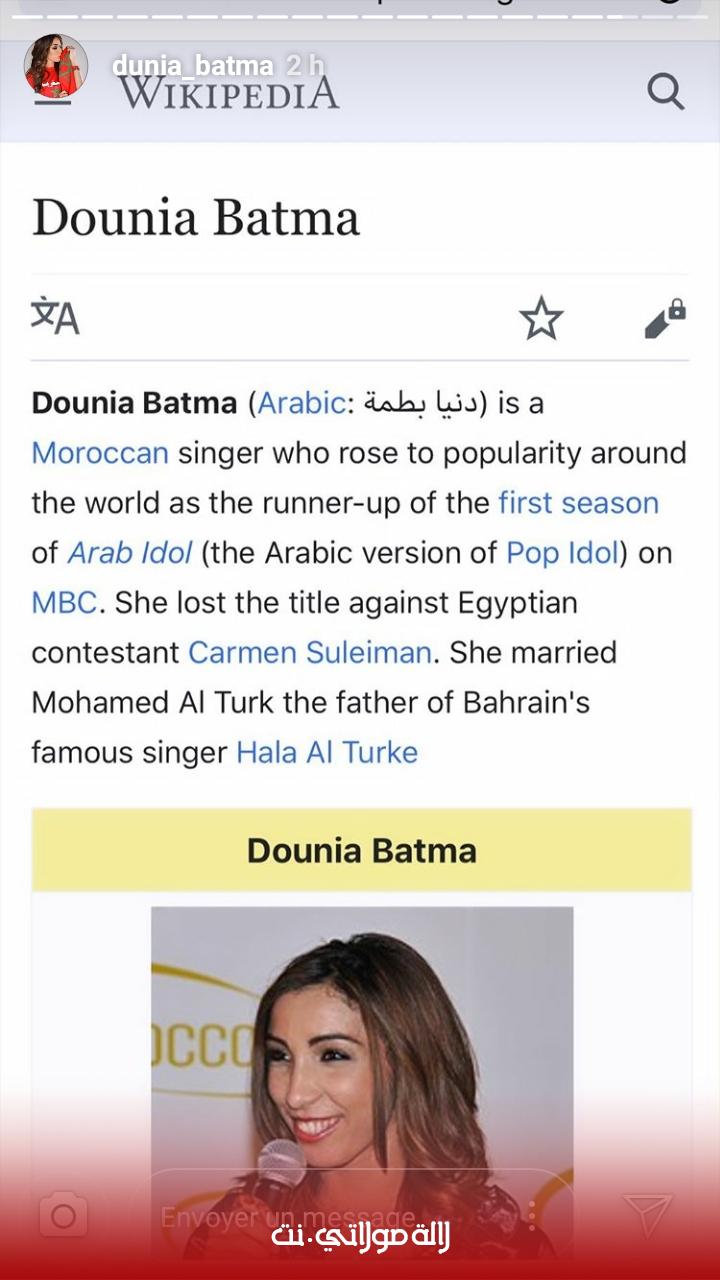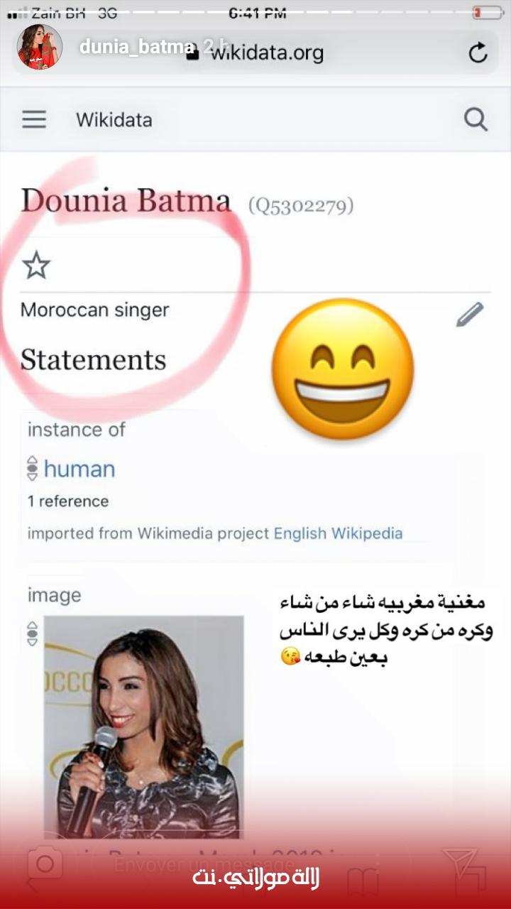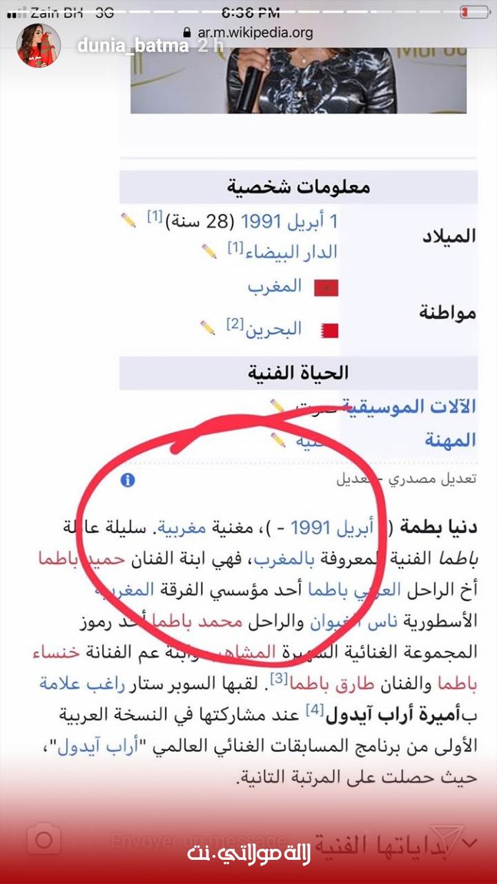 وواجهت “بطمة” أمر تحريف تعريفها على الموقع، بتدوينات نشرتها على صفحتها الخاصة بموقع التواصل الإجتماعي “انستغرام”، مؤكدة بقولها: “مغنية مغربية وشاء من شاء وكره من كره وكل يرى الناس بعين طبعه”.