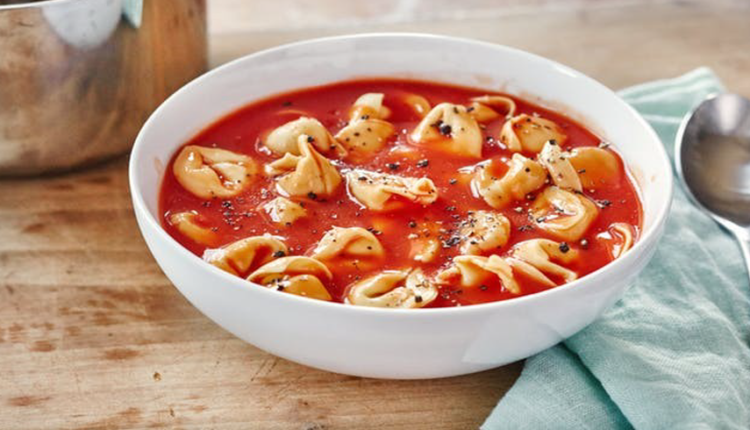 3. أضيفي الطماطم المهروسة والمكرونة والملح وقلبي لمدة 3 دقائق.