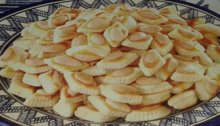 كنحتاجوا للتزيين لوز كنمسحوه مزيان من الغبار اللي كيكون فيه وكنحمروه في الفران. كنسرحوا العجينة بالمدلك بين قطعتين من البلاستيك حتى تصبح رقيقة تم نقطعوها بمرشم دائري صغير او اي مرشم كتفضلوه تم كندهنوا قطعة الحلوة ببياض البيض تم نضع وسطها حبة اللوز اللي حمرنا ونغلقوا عليها ونستمروا بنفس الطريقة حتى نكملوا العجينة تم كندهنوا وجه الحلوة ببياض البيض ونزينها برقائق اللوز الايفيلي مهرمشين او الزنجلان او اللي حبيتوا لكم حرية الاختيار تم كندخلوها للفرن اللي كيكون على درجة حرارة متوسطة حتى كتطيب وتحمر وبالصحة و الراحة