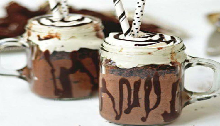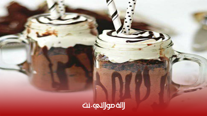 وبعد ذلك يوضع كريم شونتي و الايس كريم الشوكلاتة ومكعبات الثلج ويخلط مع الخليط الاول ثم توضع 10 دقائق في الفريزر حتى تبرد وتقدم