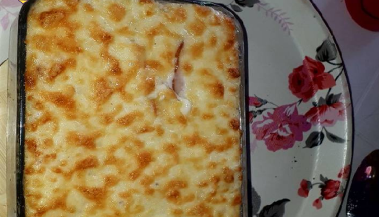 نرتب فريت في المول و نسكب بيساميل و نعمل جبنة.و نعاود طبقة أخرى و ندير جبنة و ندخلها الفرنبالصحة و الراحة