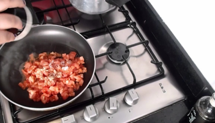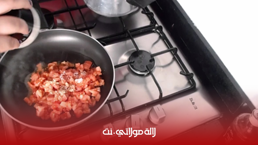 في مقلاة فوق نار معتدلة، ضعي الطماطم وأضيفي إليها الملح، الزيت والقرفة ثم الخل.
