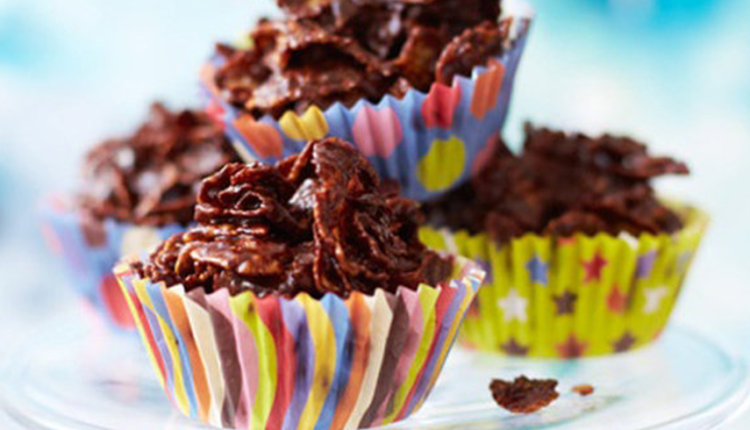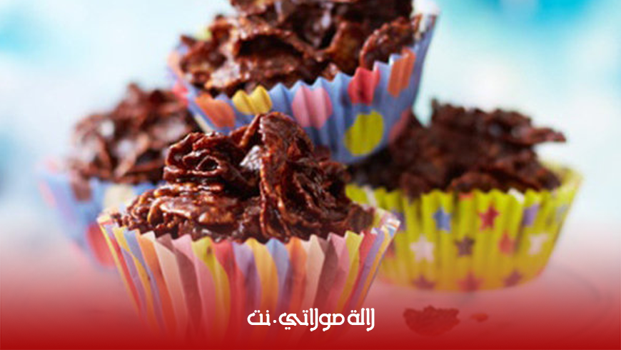 - تفتت حبات الكورن فليكس ثم تضاف إلى الشوكولاتة الذائبة وتحرك حتى تختلط المكونات معاً.