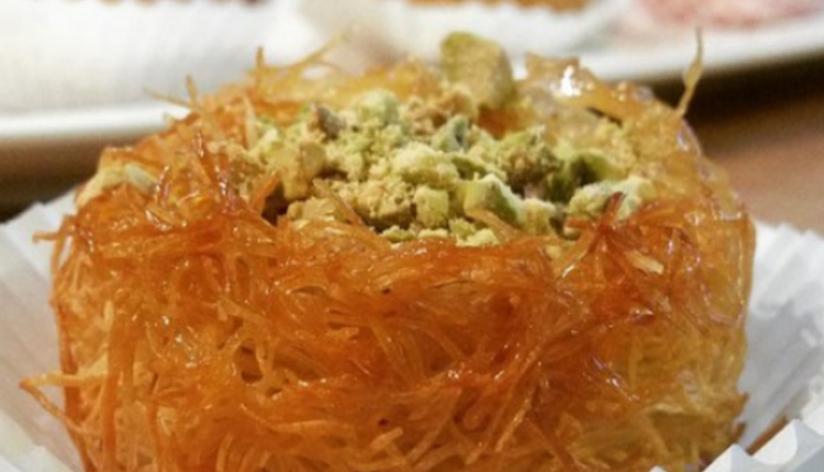 تزين الكنافات بالفستق وتقدم