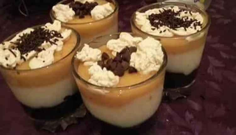 نخلط ونضعه فوق النار حتى يعقد ثم نسكبه في كاسات التقديم
