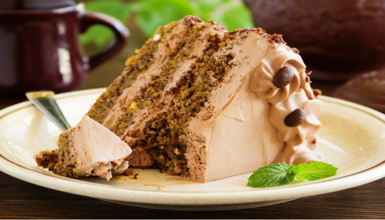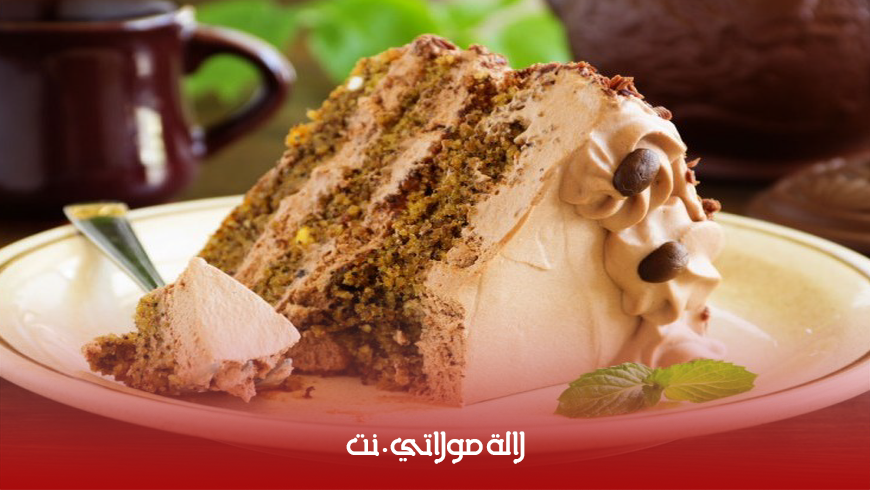 9. وزعي الكريمة فوق الكيك وهو بارد وانثري القليل من الجوز المفروم للتزيين حسب الرغبة وقدميها.