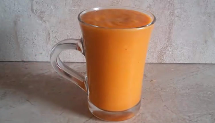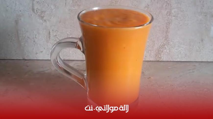 - المكونات : حبة من الجزر الطازجة + حبة من الطماطم + 4 ملاعق من الياغورت الطبيعي+ ملعقتين من العسل + كمية من عصير البرتقال