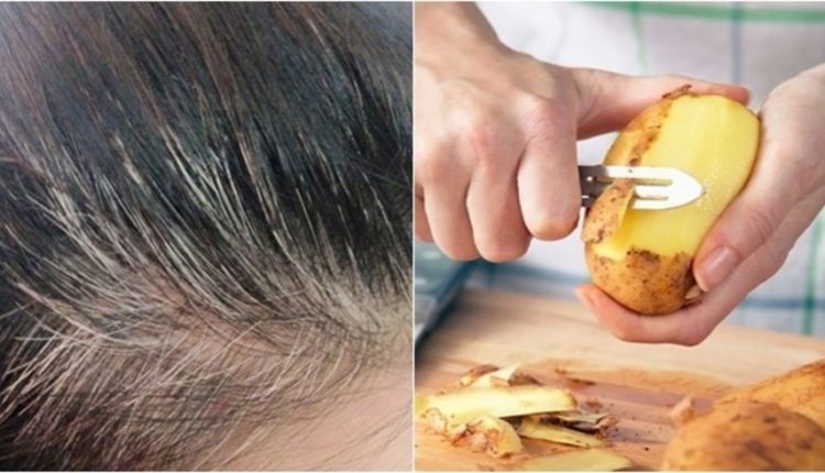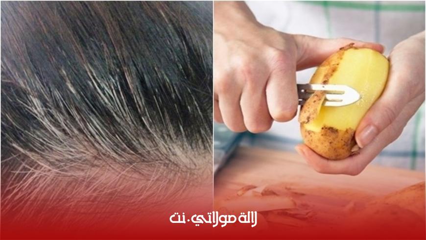 - طريقة التحضير:نضع الماء و قشور البطاطس فوق النار لمدة 5 دقائق ثم نضيف إليهم زيت إكليل الجبل ونمزج الكل جيدا بعد ذلك نضع الخليط على الشعر ونتركه حتى يجف ثم نغسله بالماء الفاتر و الشامبو، تكرر هذه الخلطة مرة واحدة في الأسبوع للتخلص من الشعر الأبيض.