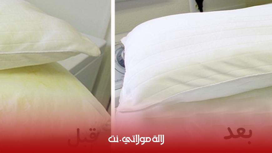 - قومي سيدتي بملء وعاء من الماء الفاتر حتى منتصفه، ثم أضيفي عليه كوبا من المسحوق مع نصف كوب من بيكاربونات الصودا ونصف كوب من عصير الليمون بعدها قومي بوضع الوسائد والأغطية الصيفية المسماة باللحاف في الوعاء، وتركها منقوعة لمدة 30 دقيقة حيث أن النقع يساهم في التخلص من البقع سريعا، ثم افركيها بين يدين دون الحاجة لالة الغسيل ثم تشطف المخدة بالماء جيدا، بعدها ضعي قطرات من عطرك المفضل أو روح المعطر الخاص بالتنظيف في وعاء آخر به ماء وانقعي فيه الوسائد والأغطية مدة 15 دقيقة قبل تعريضها لاشعة الشمس.