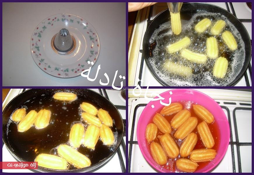 خليتها حتى تحمرت على نار مهيلة و عملتها في العسل يكون بارد من بعد عملتها في شبكة تسقطر
