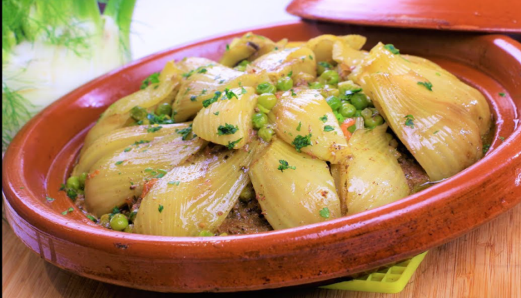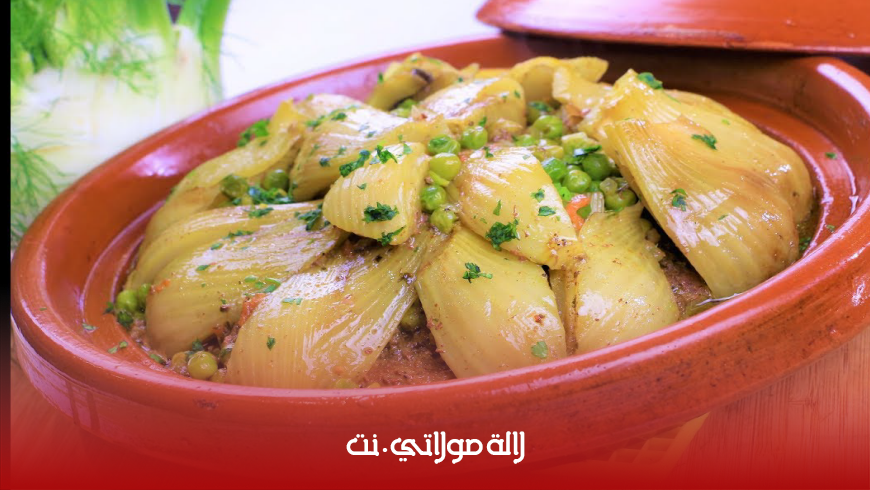 في الطاجين نضع البصل واللحم والربيع والثوم والعطرية ثم الزيت