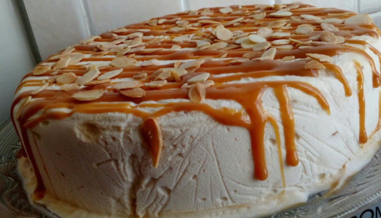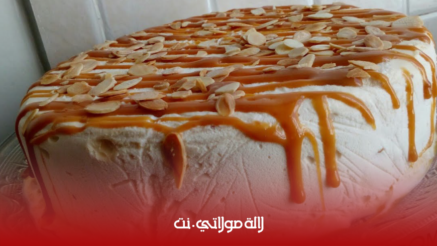 - ثم نضيف نيسلي كراميل ونكمل الخفق الى ان تنسجم كل العناصر في هذه المرحلة يمكن اضافة لوز مقلي ومهرمش أو الفواكه الجافة،شكولاطة،النوكا أو اي نكهة مفضلة أو يمكن تركه كما هو بدون اضافات