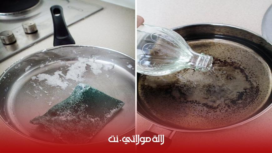 • طريقة التحضير :في الوعاء المحروق نسكب المكونات نظيف عليها الماء ونضعها على النار حتى تغلي جيدا مع التحريك ثم نسكبها ستلاحظين اختفاء كل الشوائب ثم نغسلها بالليفة.