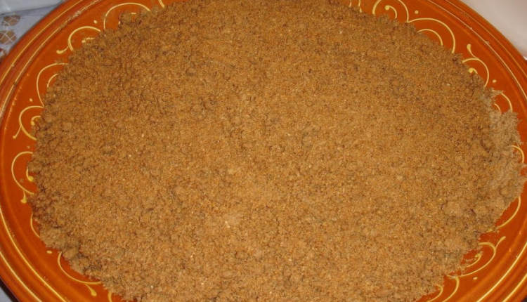 كنطحن جميع العناصر مع شوية ديال السكر ونخلي شوية الزنجلان بلا طحين نديرة صحيح